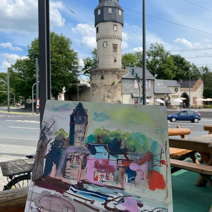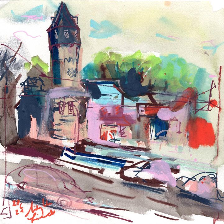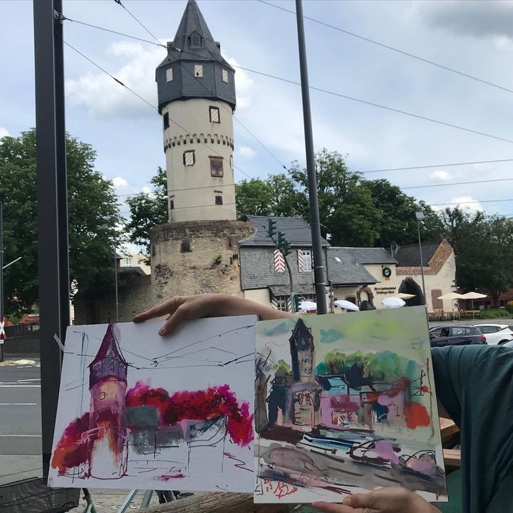 Farbexperiment 2 – nach dem langen „Rumtüddeln“ mit der ersten – nochmal eine lockere kürzere Skizze hinterher – @chrisfajen 🙂 Friedberger Warte in Flammen und bei mir… hmm, irgendwo lost zwischen Fläche und Linie – aber schöne Stellen hat´s. Let´s keep on trying! #uskrheinmain @uskrheinmain heute beim Juni-Treffen mal endlich wieder draußen zusammen.