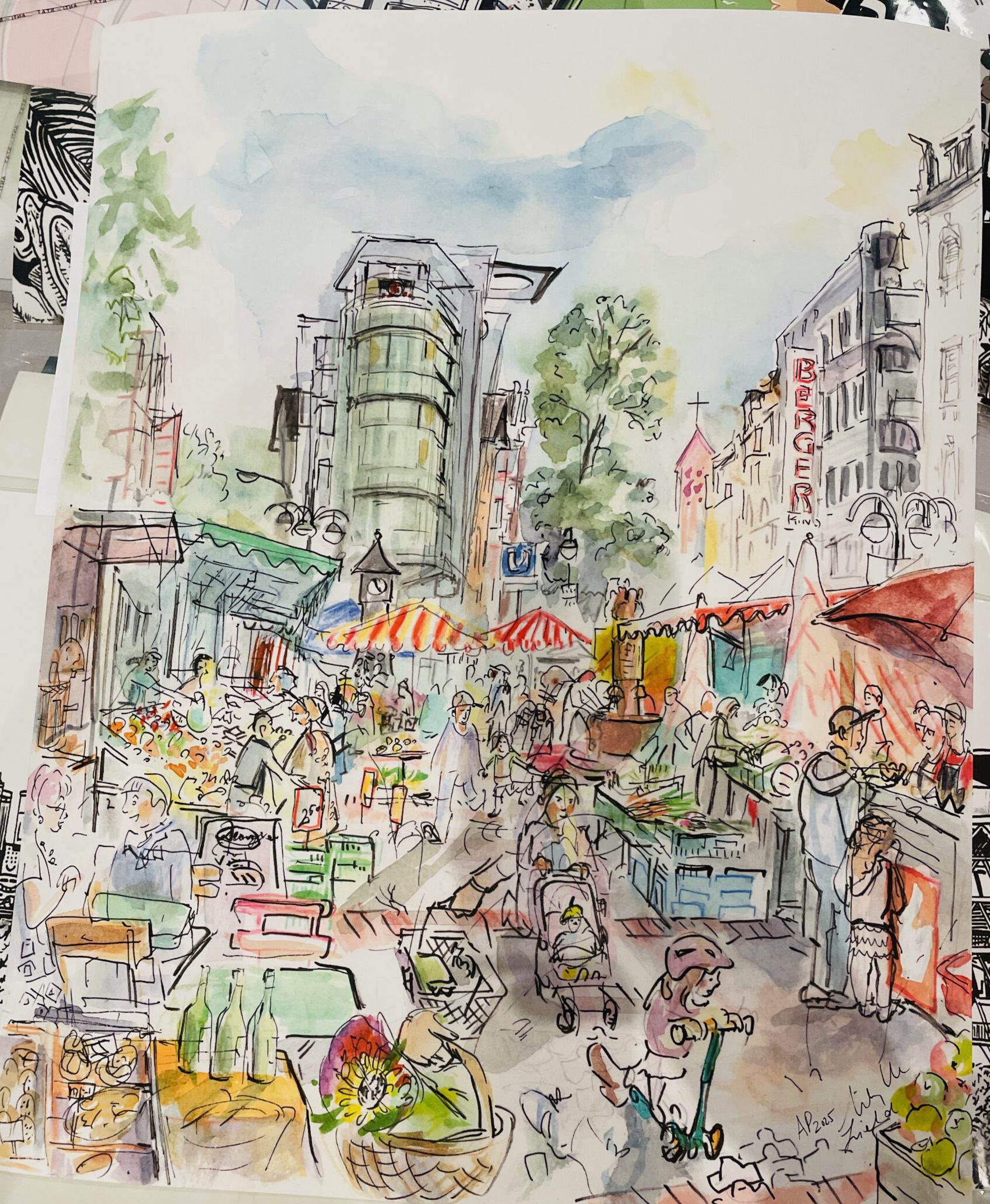 „Lieblingsorte in Frankfurt“ ist im Societätsverlag erschienen und 20 Zeicherinnen und Zeichner aus Frankfurt haben mit Amelie Persson (Hrsg.) ihre insgesamt 60 Orte in Frankfurt gezeichnet und betextet.