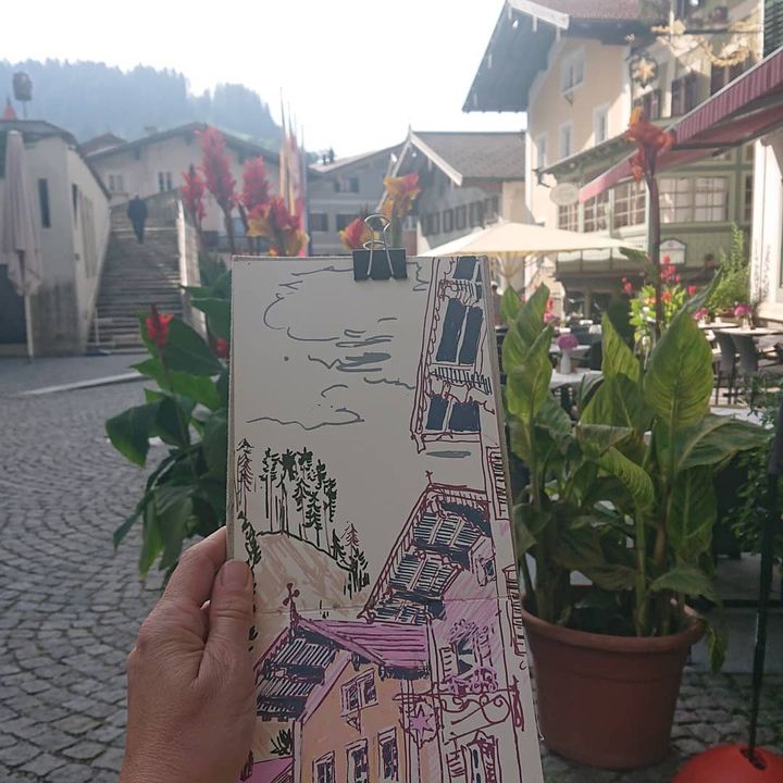 #acrylmarker #posca #urbansketching #oesterreich #austria #dachueberstand #traufeohneregen #bergort #brixental #hopfgarten #sketchbook #skizzenbuch #croquis #skizze #sketch #sketchwhilewaiting