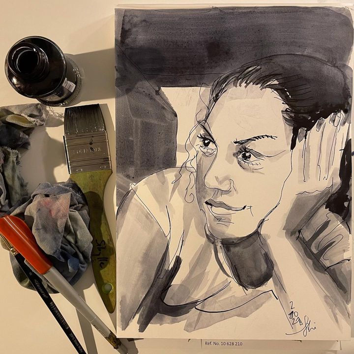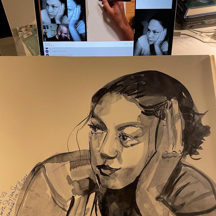 Fun sketching along…. See him doing these amazing natural ink portraits!!