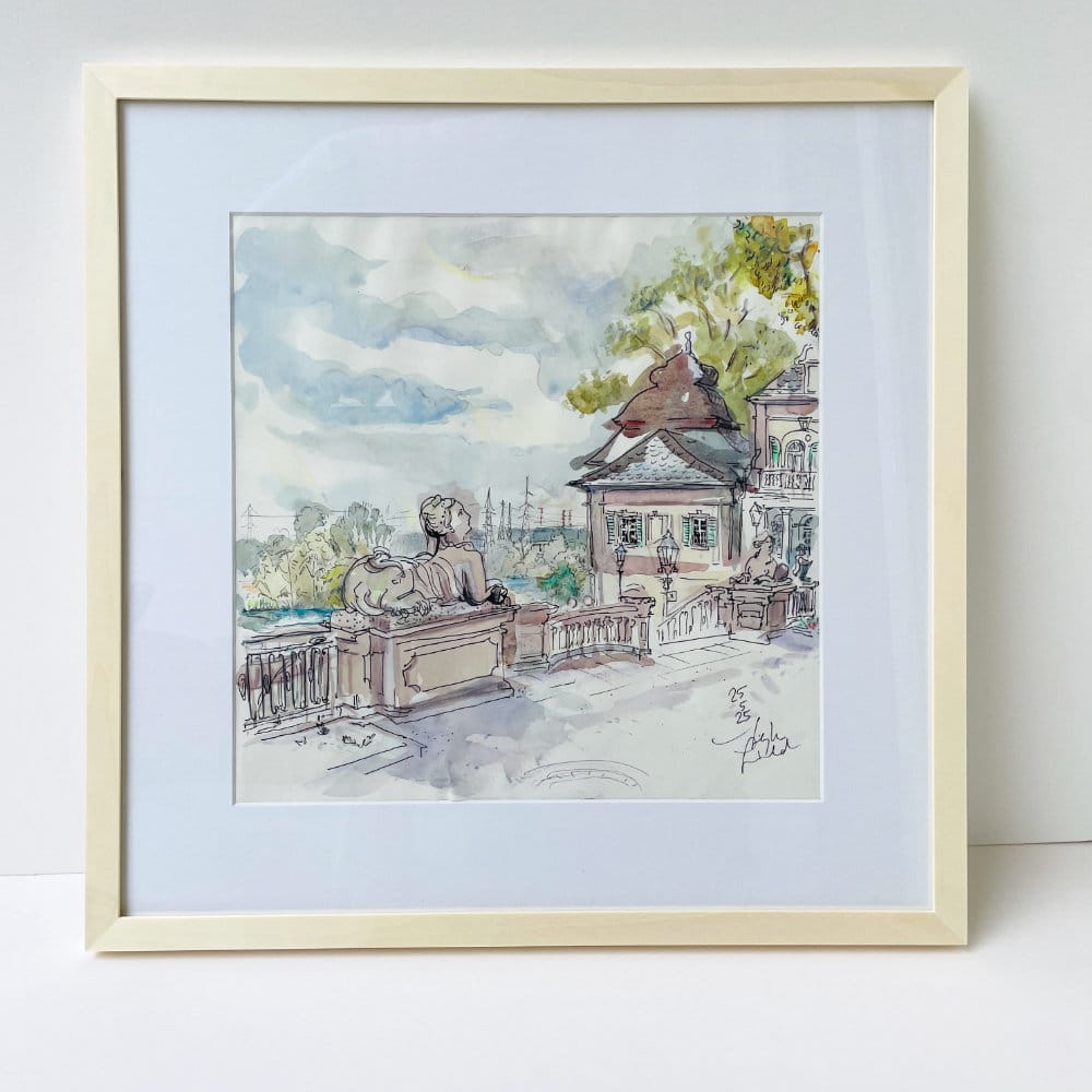 Originalzeichnung 29×29 cm im Rahmen und Passepartout 40x40cm