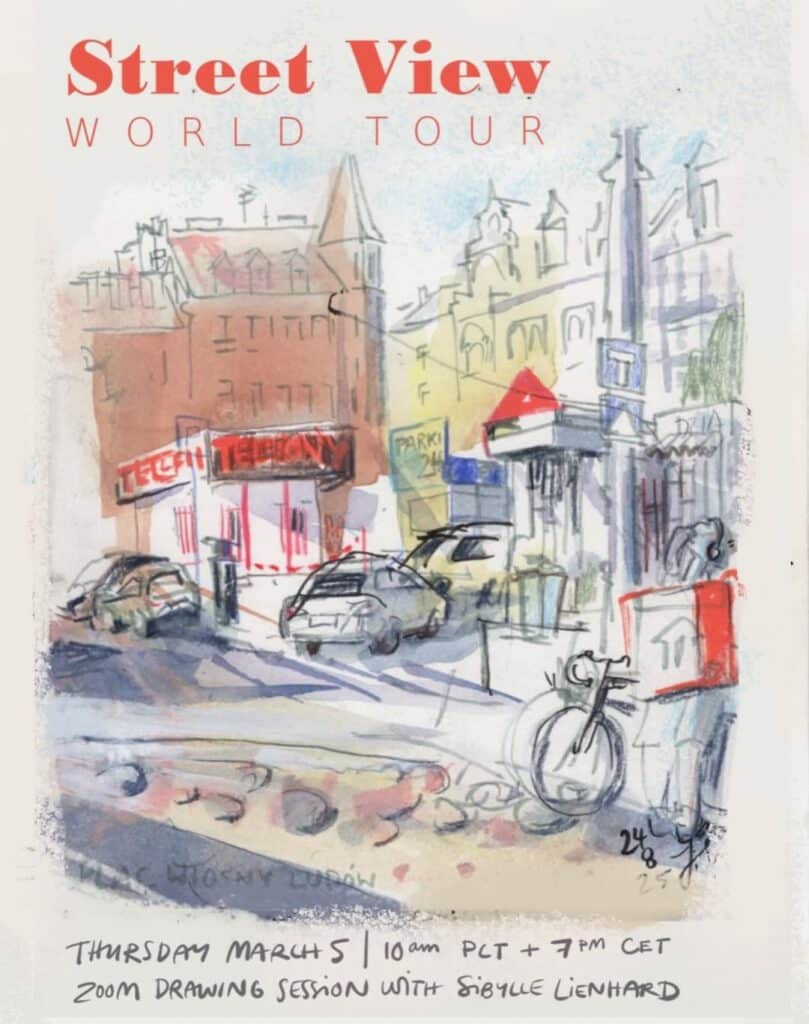 Ich freue mich sehr, zu Gast sein zu dürfen beim monatlichen Treffen – online bei Streetviewworldtour, einer Zeichentreffen-Serie, die ins Leben gerufen wurde von Jenny Adam und Eleonar Doughty.