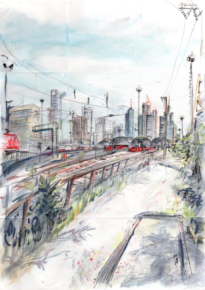 Wer sitzt denn da am Wegesrand? Mit Skizzenbuch und Stift? Urban Sketching heißt das Live-Zeichnen vor Ort, was unter Architekt:innen oder Künstler:innen schon seit jeher verbreitet ist. Daraus ist in zahlreichen Gruppen seit 2007 eine weltweite Bewegung geworden. Die Community aus zeichenbegeisterten Menschen wächst. Sibylle Lienhard ist Teil der Urban Sketchers Rhein-Main und zeigt die Stadt und ihre Architektur aus dem Blickwinkel der Zeichner:innen. Sie berichtet darüber, wie die Angst vorm weißen Blatt verfliegen und jeder mit dem Zeichnen beginnen kann – ein Strich ist der Anfang einer Geschichte.